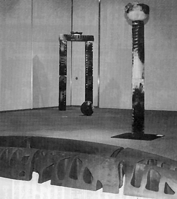 しかし、この作品は“墓場”を再現しようとしているわけでない。“位牌がテーマ”といっても、位牌に意味が与えられているわけでは必ずしもない。そうではなく、亜鉛メッキされたトタンにグラインダーで傷を付け、雨ざらしにして錆びさせ、位牌の形に切り取って立ち上げるという、ほとんど無意味な行為そのものが作品として成立している。