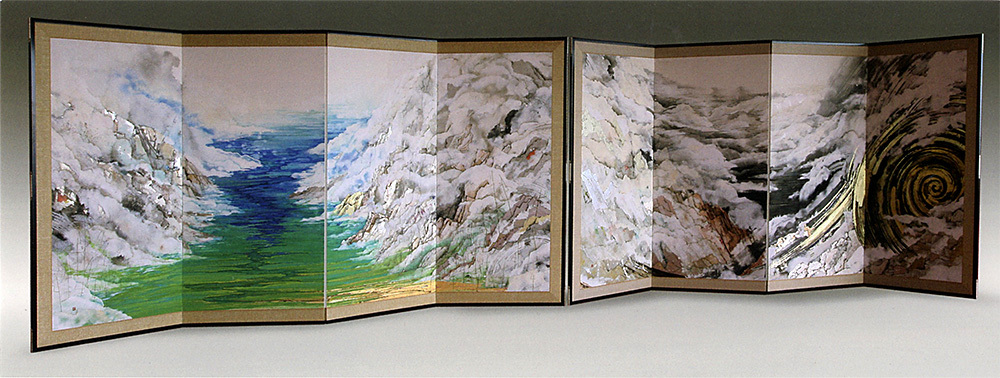 You・Gen(2016)6尺4曲1双 麻紙、岩絵具、金・銀・プラチナ・錫・銅箔